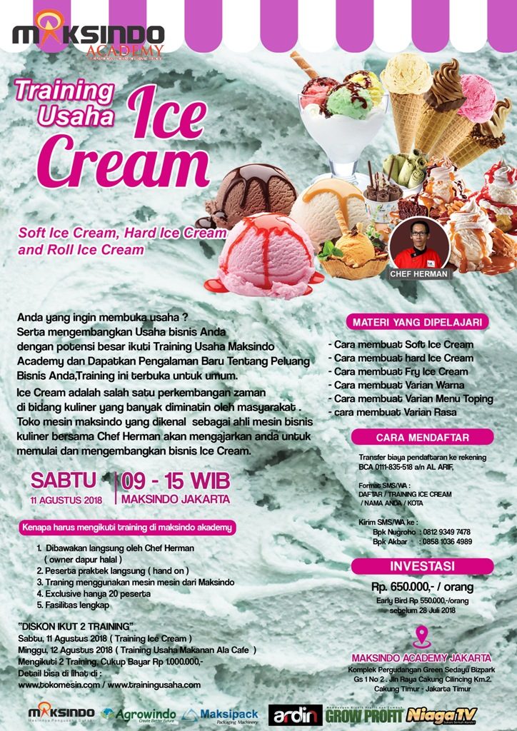 TRAINING USAHA ICE CREAM DAN TOPPING Soft Ice Cream, Hard Ice Cream and Roll Ice Cream Sabtu, 11 Agustus 2018