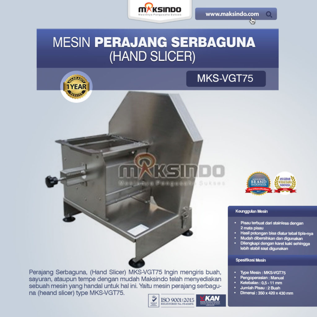 Perajang Serbaguna (Hand Slicer) MKS-VGT75 Ingin mengiris buah, sayuran, ataupun tempe dengan mudah ? Maksindo telah menyediakan sebuah mesin yang handal untuk hal ini.