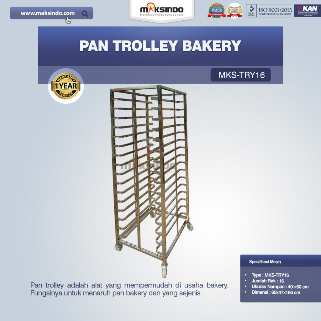 Pan Trolley Bakery (MKS-TRY16) Pan trolley adalah alat yang mempermudah di usaha bakery. Fungsinya untuk menaruh pan bakery dan yang