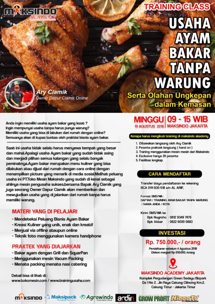 TRAINING USAHA AYAM BAKAR TANPA WARUNG Serta Olahan Ungkepan dalam Kemasan Anda ingin memiliki usaha ayam bakar yang lezat ?