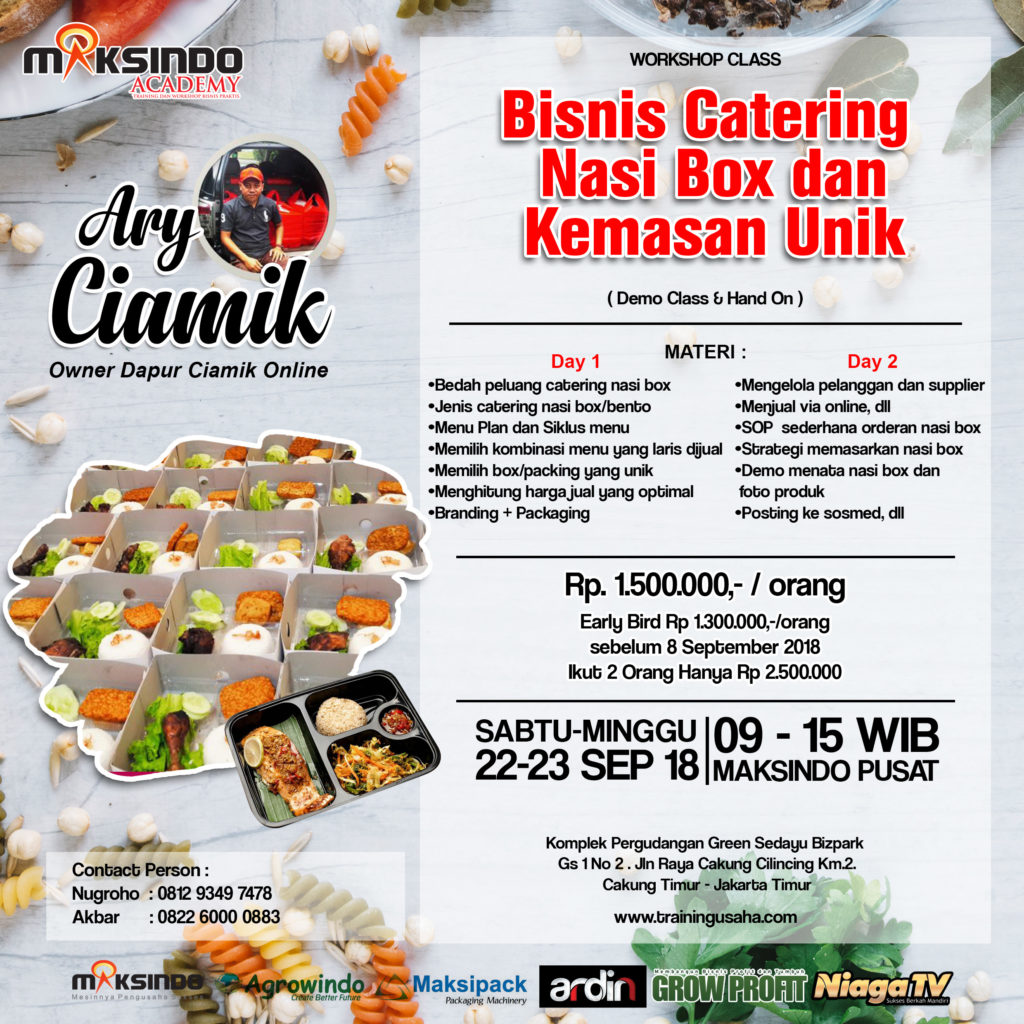 WORKSHOP CLASS Worksop Buka Bisnis Kuliner Catering Nasi Box & KemasanUnik, Sabtu-Minggu 22-23 September 2018 Anda ingin memiliki usaha Catering