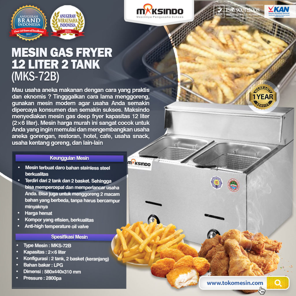 Mesin Gas Fryer MKS-15L Maksindo menyediakan mesin gas fryer high quality untuk menunjang berbagai usaha Anda di bidang kuliner. Miliki segera