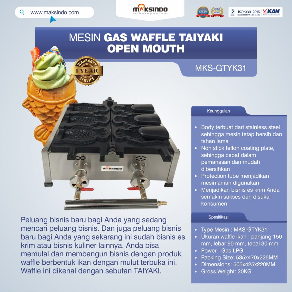 Mesin Gas Waffle Taiyaki Open Mouth (GTYK31) – 3 Cetakan Peluang bisnis baru bagi Anda yang sedang mencari peluang bisnis.
