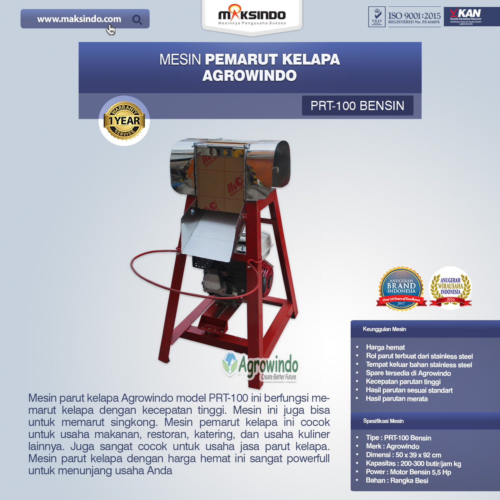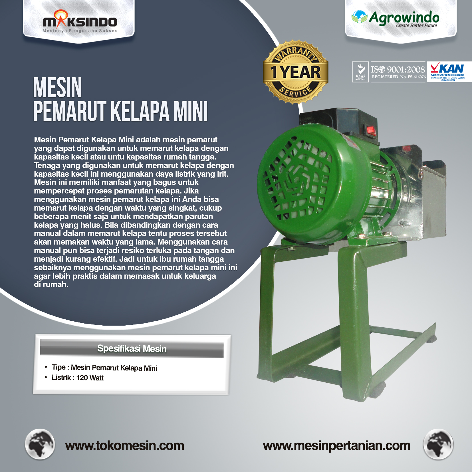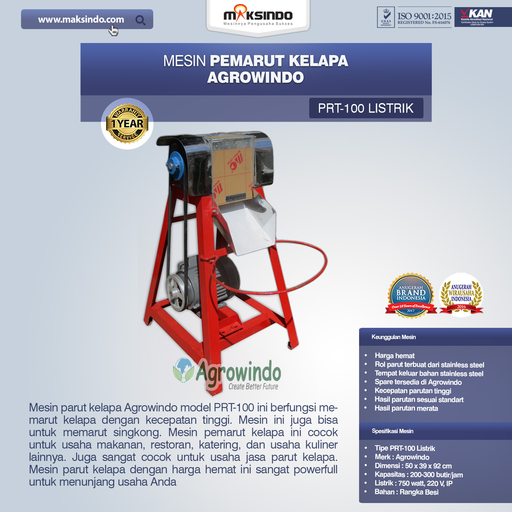 Spesifikasi Mesin Pemarut Kelapa Produksi Agrowindo