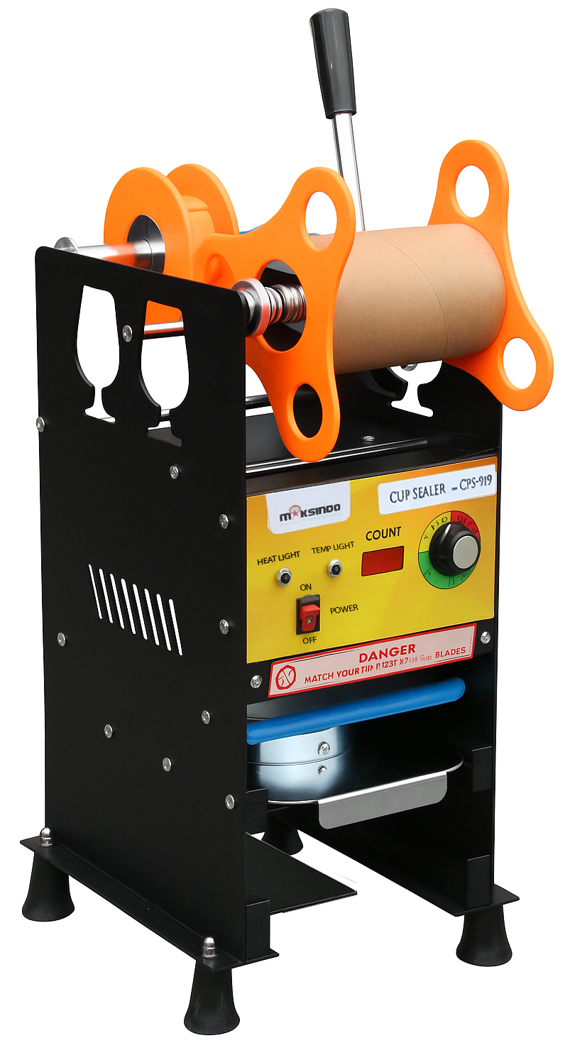 Minuman kemasan dengan Cup Sealer Manual tentunya tidak membuat pedagang kesusahan dalam memberikan pelayanan terbaik dalam penjualan pada para pembelinya. Dimana penjual minuman kemasan saat ini tidak perlu repot repot lagi mengikat atau menutupi dengan berbagai penutup minuman. Karena dengan alat press gelas, tidak hanya ditutup tapi tutup minumannya juga dirapatkan. Nah, inilah saatnya anda berpikir untuk mulai beralih menggunakan Cup Sealer Manual ini, karena hanya dengan kemasan ini penjual dapat mendapatkan laba dan membuat produk minuman lebih berkualitas dan menarik. saat ini di Toko Mesin Maksindo sudah tersedia mesin cup sealer yang berkelas salah satunya adalah dengan tipe CPS-919.