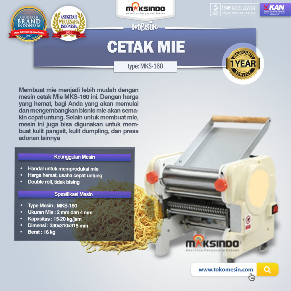 Mesin Cetak Mie (MKS-200) Mau usaha mie lebih sukses dan lancar produksi ? Gunakan mesin andalan pengusaha mie dari Maksindo