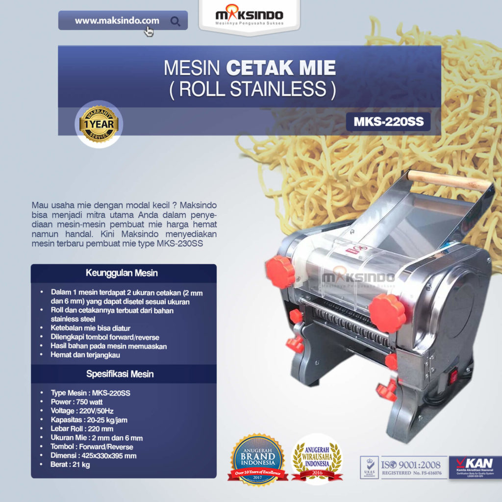 Mesin Cetak Mie MKS-220SS Mau usaha mie dengan modal kecil ? Maksindo bisa menjadi mitra utama Anda dalam penyediaan mesin-mesin