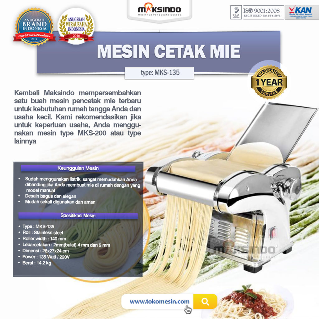 Mesin Cetak Mie (MKS-135) Kembali Maksindo mempersembahkan satu buah mesin pencetak mie terbaru untuk kebutuhan rumah tangga Anda dan usaha